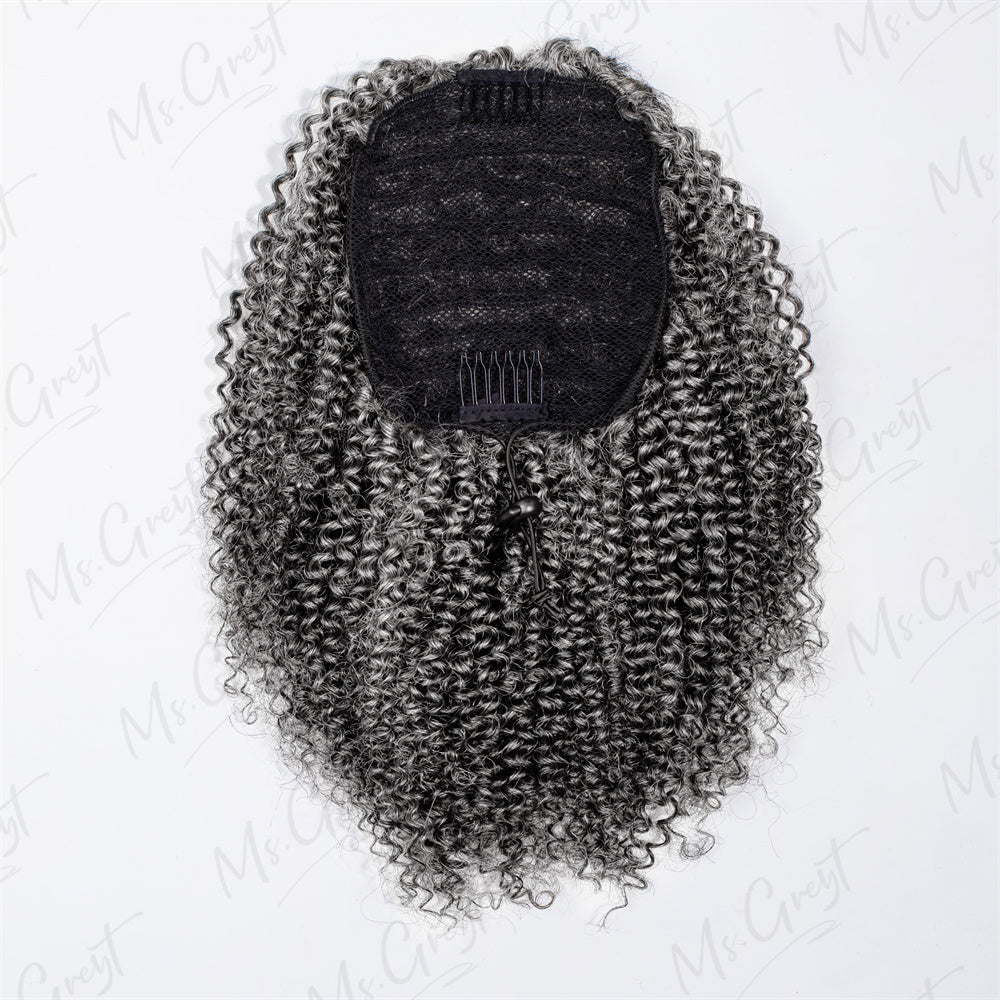 14" Grey Human Hair Drawstring Ponytail™️-GPONT001